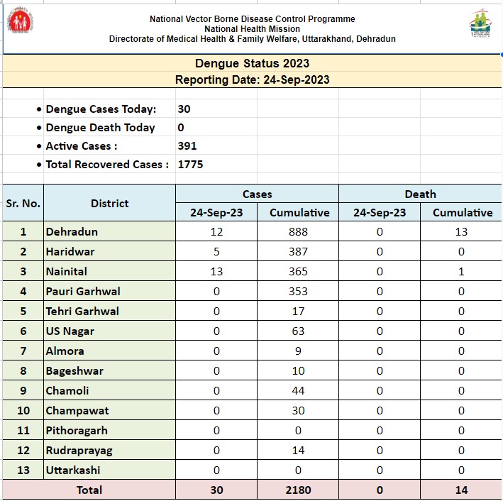 उत्तराखंड: बुधवार को डेंगू मरीजों का आंकडा पहुंचा 84, देखें रिपोर्ट..