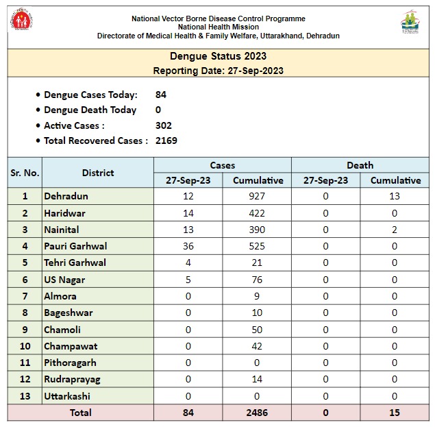 उत्तराखंड: बुधवार को डेंगू मरीजों का आंकडा पहुंचा 84, देखें रिपोर्ट..